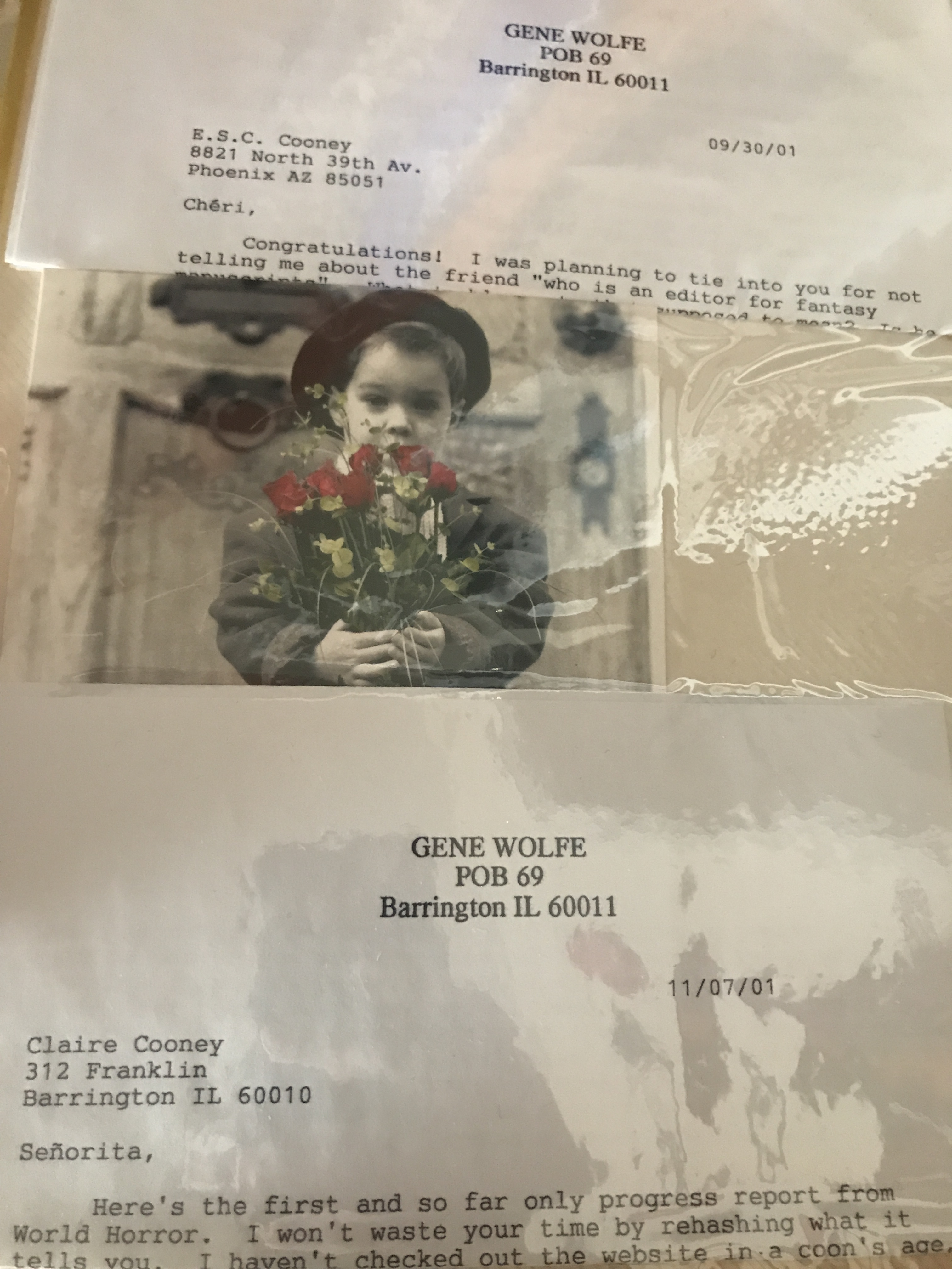 Gene Wolfe’s daughter called. Right there. Mid-paragraph. I looked at my phone today, and saw the call lasted two minutes. Two minutes. Strange.