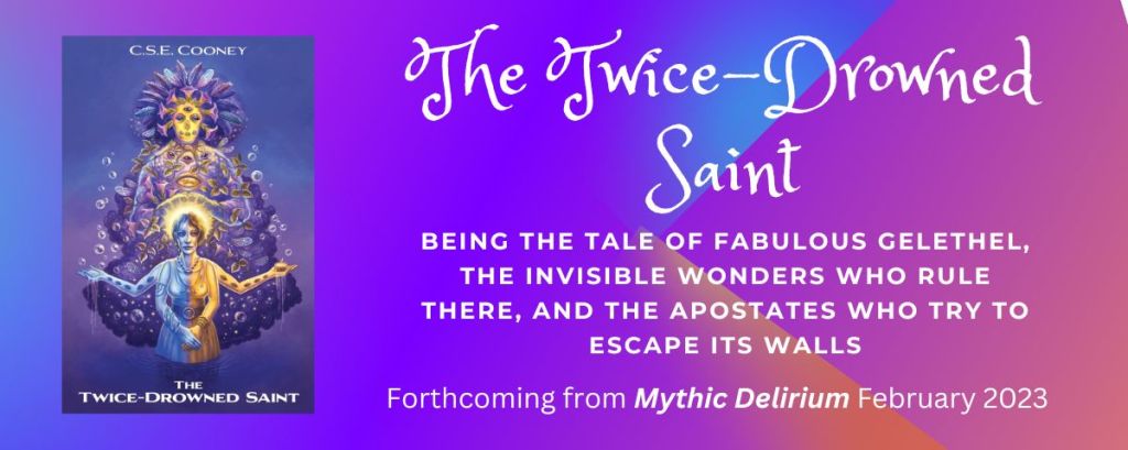 The pre-order links are still appearing in various places, but they will all be gathered conveniently in one place on Mythic Delirium’s website. Here’s where to find The Twice-Drowned Saint!