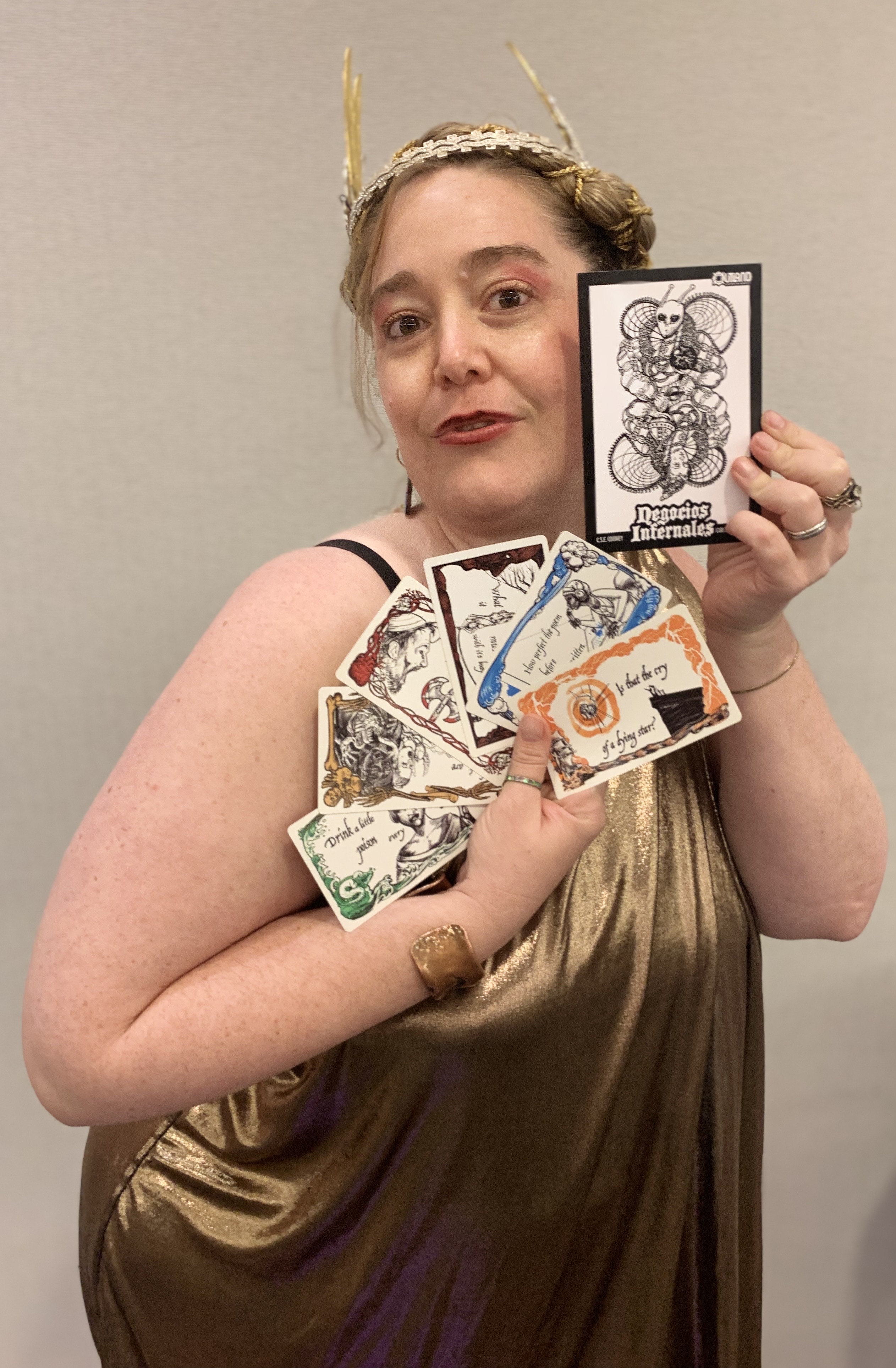 C. S. E. Cooney and Carlos Hernandez have made a roleplaying game! It’s called Negocios Infernales. Unlike other RPGs, however, Negocios Infernales uses a spooky deck of custom cards to determine success and failure, inspire improvisation, create characters, and create mayhem in the collaborative story you are telling.