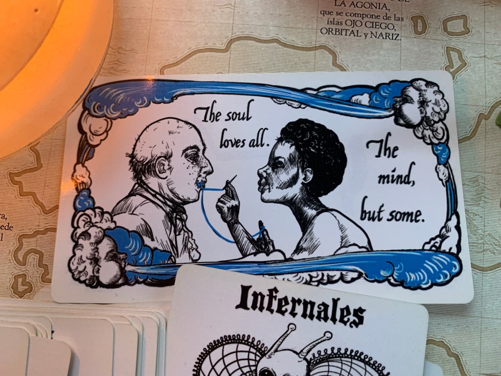 Our Kickstarter for NEGOCIOS INFERNALES (which includes the full 70-card Destino deck as its core mechanic) goes live on Tuesday, October 10th!