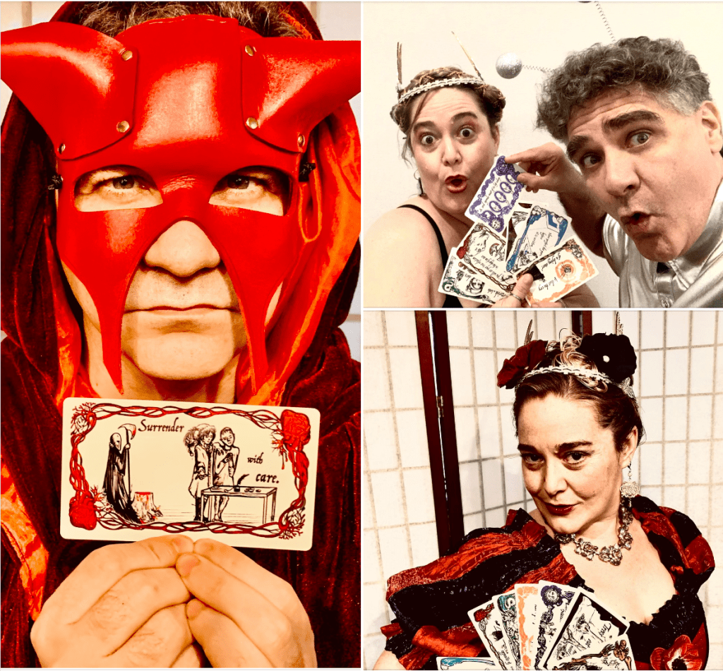 An Infernal Salon is a fun, low-stakes writing workshop, high on community, ix-nay on the essure-pray. We’ll draw cards from “the Deck of Destiny” from our forthcoming TTRPG “Negocios Infernales” for creative prompts, set a timer for 20 minutes, and UNLEASH! Then we all share what we’ve made! It’s all very raw and vibrant, like a lightning storm!