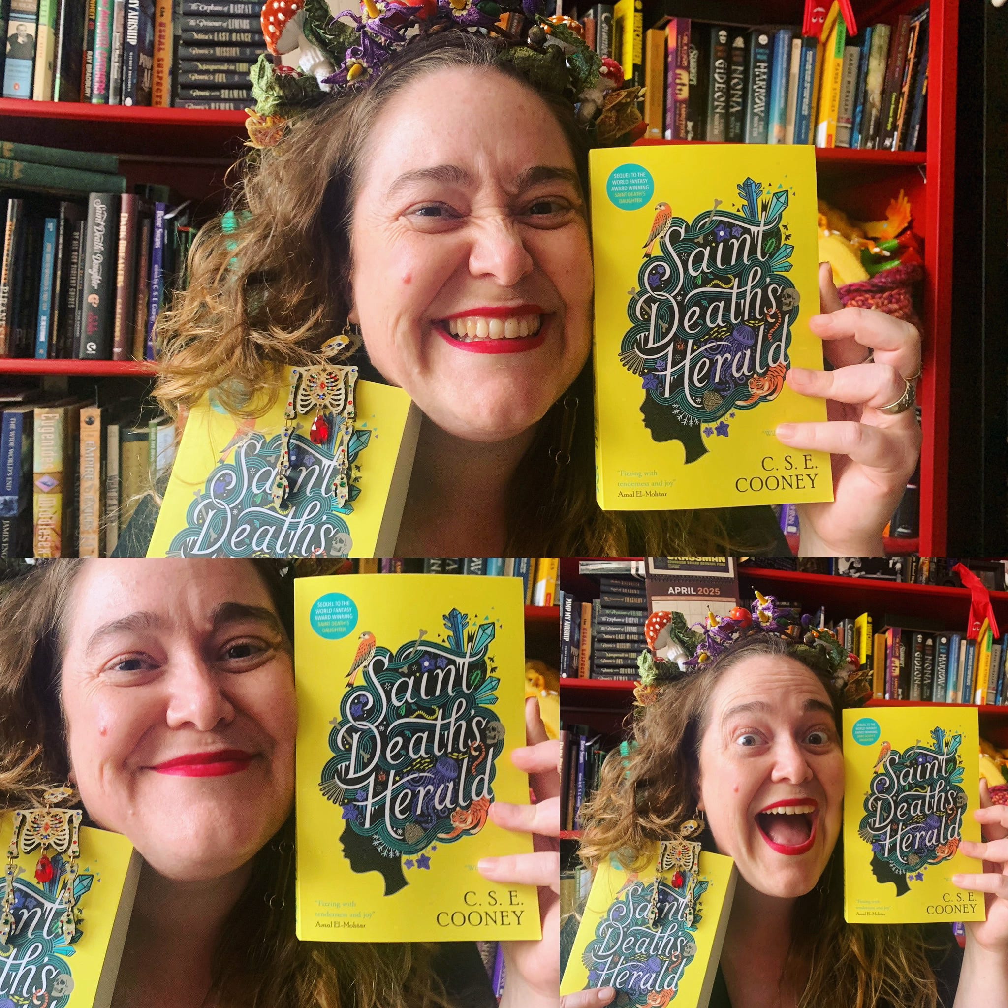 Look at that book! Saint Death’s Herald (my mama calls it “Harold”) is just a little guy! It’s so much SHORTER than the PINK one. Saint Death’s Daughter was a CHONK.