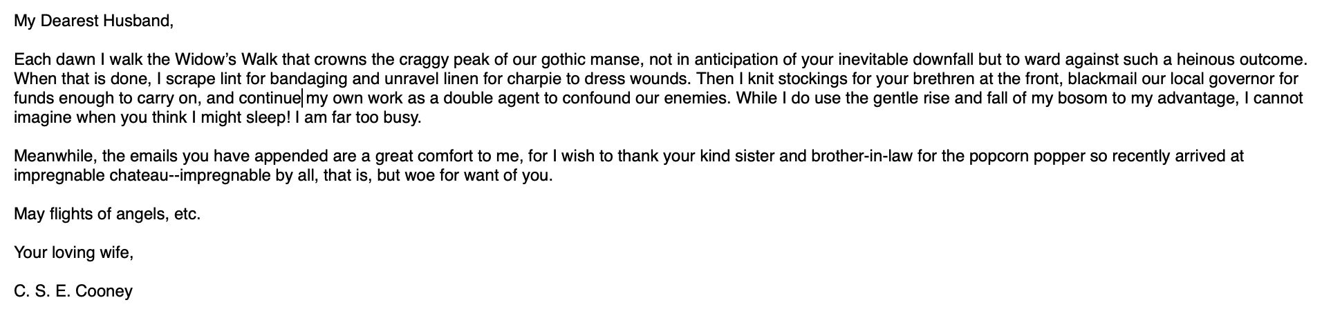 …only the library is my bedroom. (I mean, it kind of is ALSO a library.) And instead of a thesis, I’m writing FIDDLE.