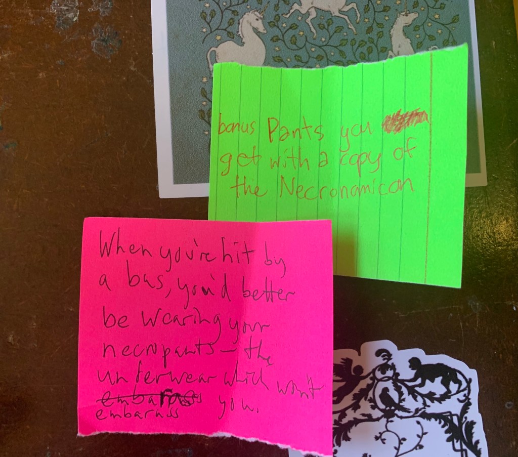 I’ve been reading some of my old ten-minute plays I used to write for 24-Hour New Plays Festivals, for Columbia College Chicago, and then later for the Immediacy Theatre Project. This is one of the latter ones, which means it’s newer, though it’s still not very new.