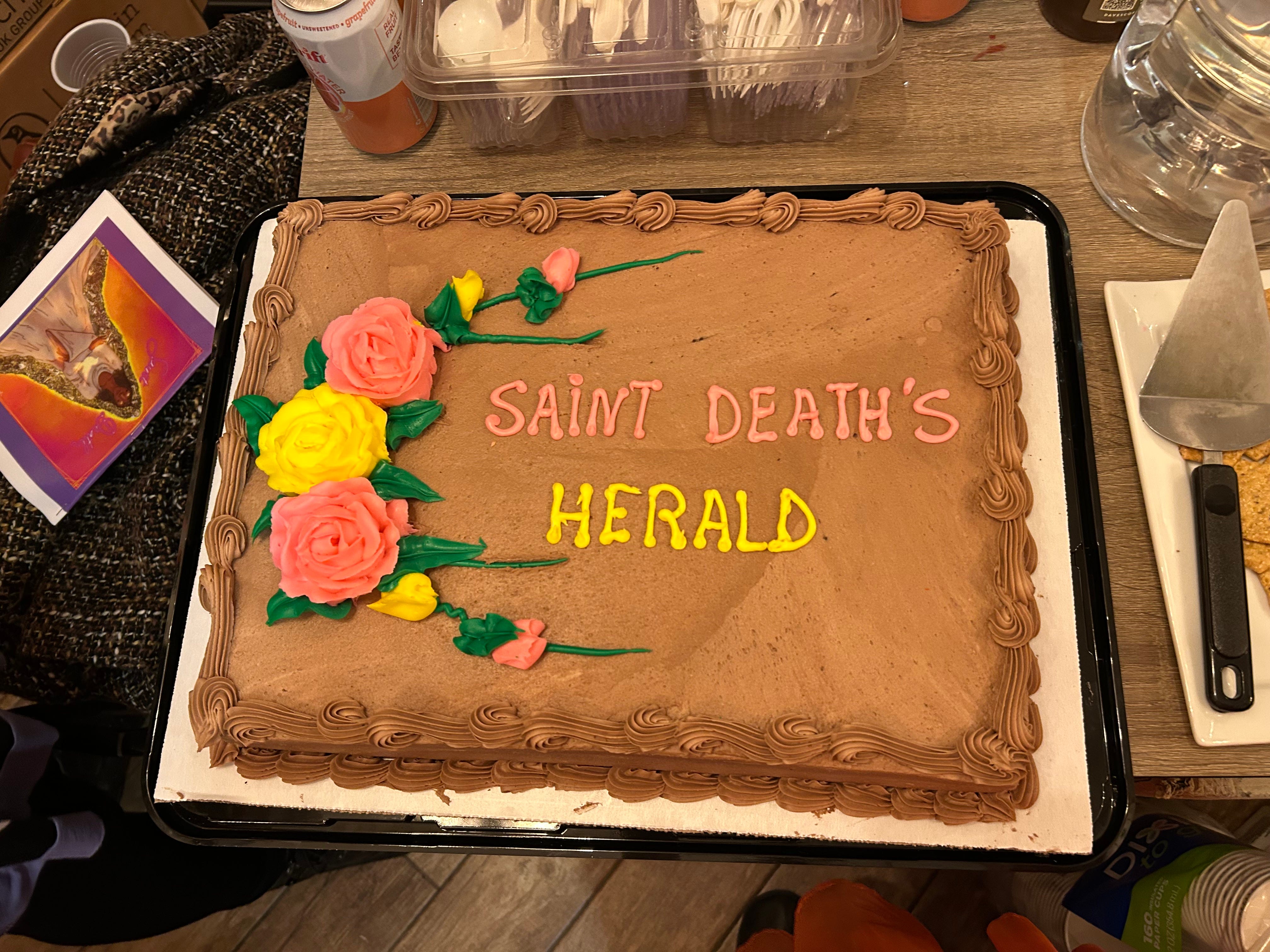It was like three birthday parties in a weekend, and it wasn’t even my birthday! It was Herald’s! We even had cake. And, hobbit-like, we gave everyone presents: calendars, featuring Phoebe Ashcroft’s fan art of the 12 gods of Quadiíb. Carlos helped do the graphic design, and Carla Kissane came over on Wednesday to help me staple everything, which was so joyful and playful. I’m so happy.